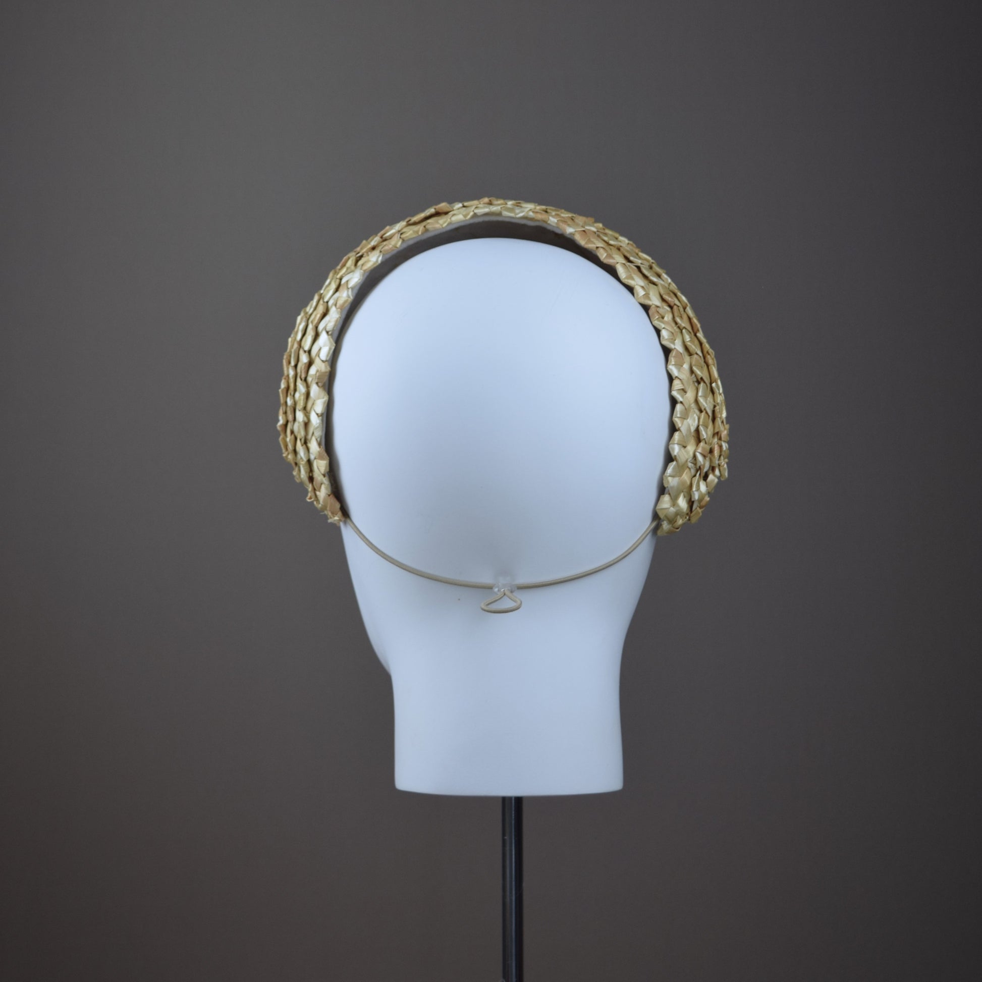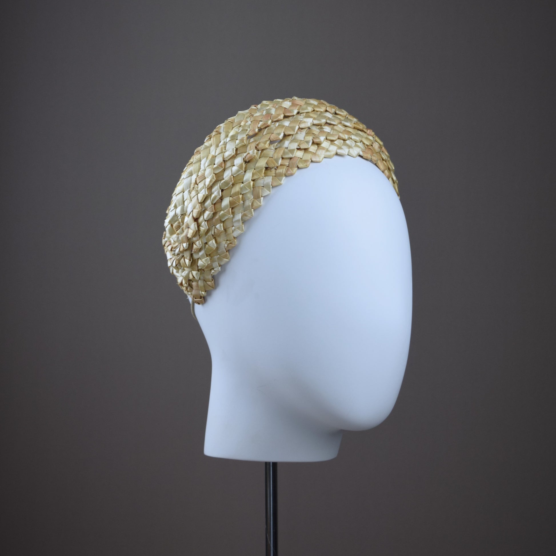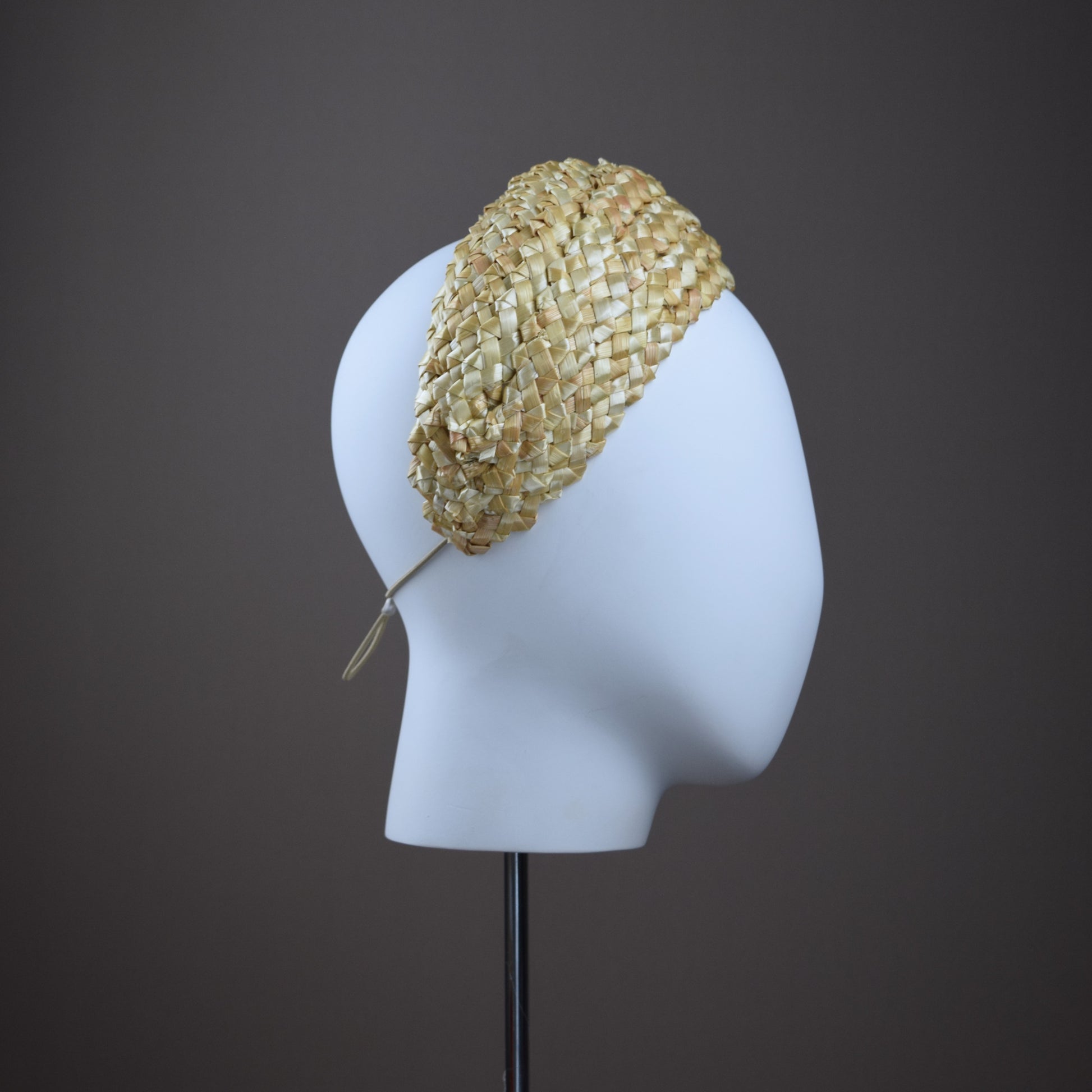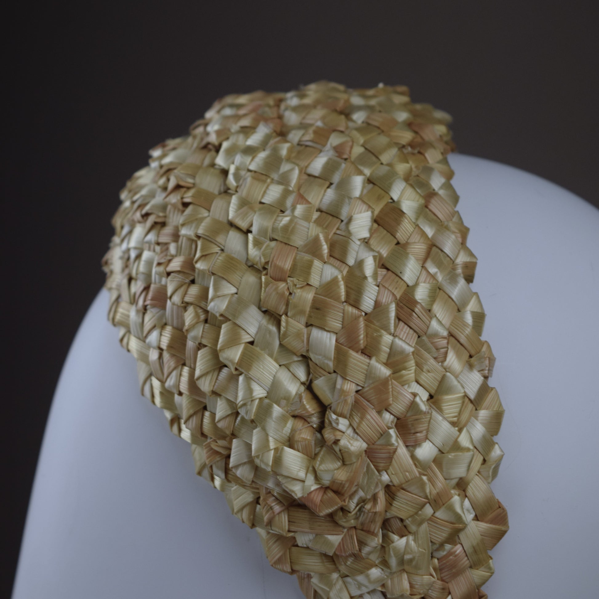 Our Jinsun headband formed from hand woven straw braid boasts a natural elegance with a light summery mood.