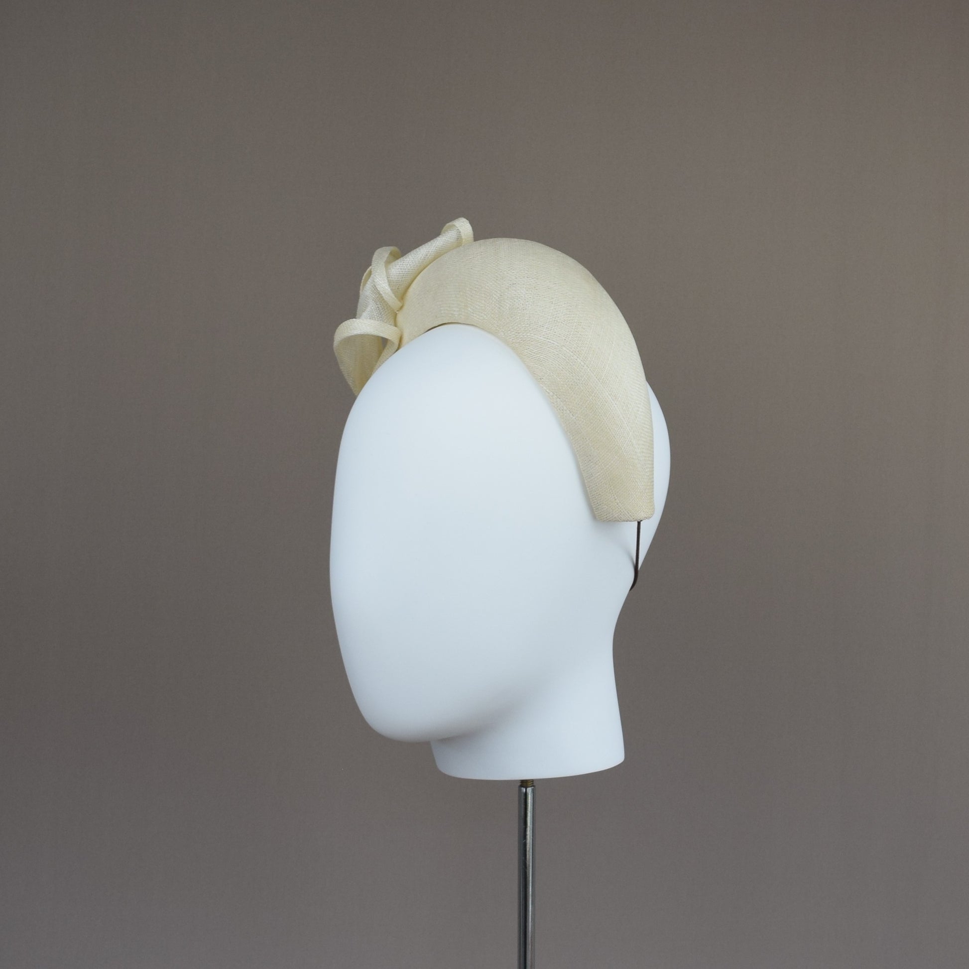 The same height as our Halo Headband but with shorter sides. Hand formed from the finest quality sinamay straw in a dark ivory/cream shade.