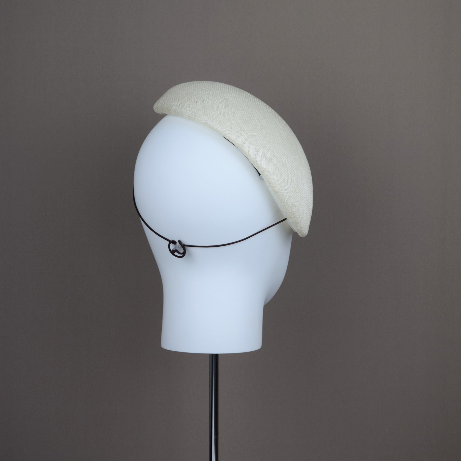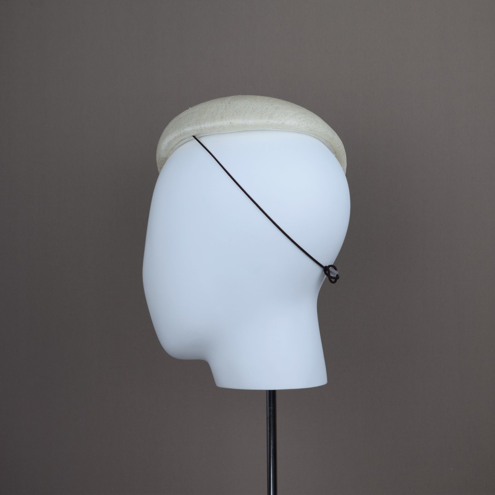 Formed from a fine sinamay straw and adorned with an optional birdcage veil.